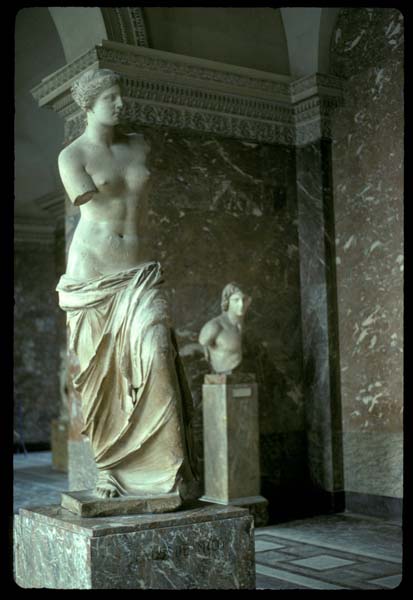 2) VENUS de MILO - Louvre treasure as Greek looks on, Paris, France