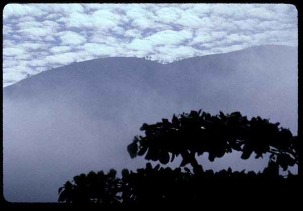 28) MORNING SILHOUETTE - Hillside views from bus station, rural Guatemala